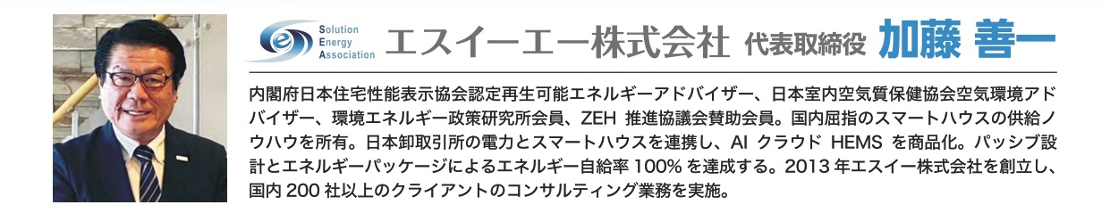 本セミナーでは、エスイーエー株式会社の加藤社長より「スマート・オフ・グリッド・ハウス戦略」についてお話しいただきます。さらに工務店による実際の取り組みとして、明工建設株式会社の仁藤社長より導入事例をご紹介いただきます。新しい住宅戦略に課題を感じている方、次世代スマートハウスに関心を持っている方はぜひご参加ください。