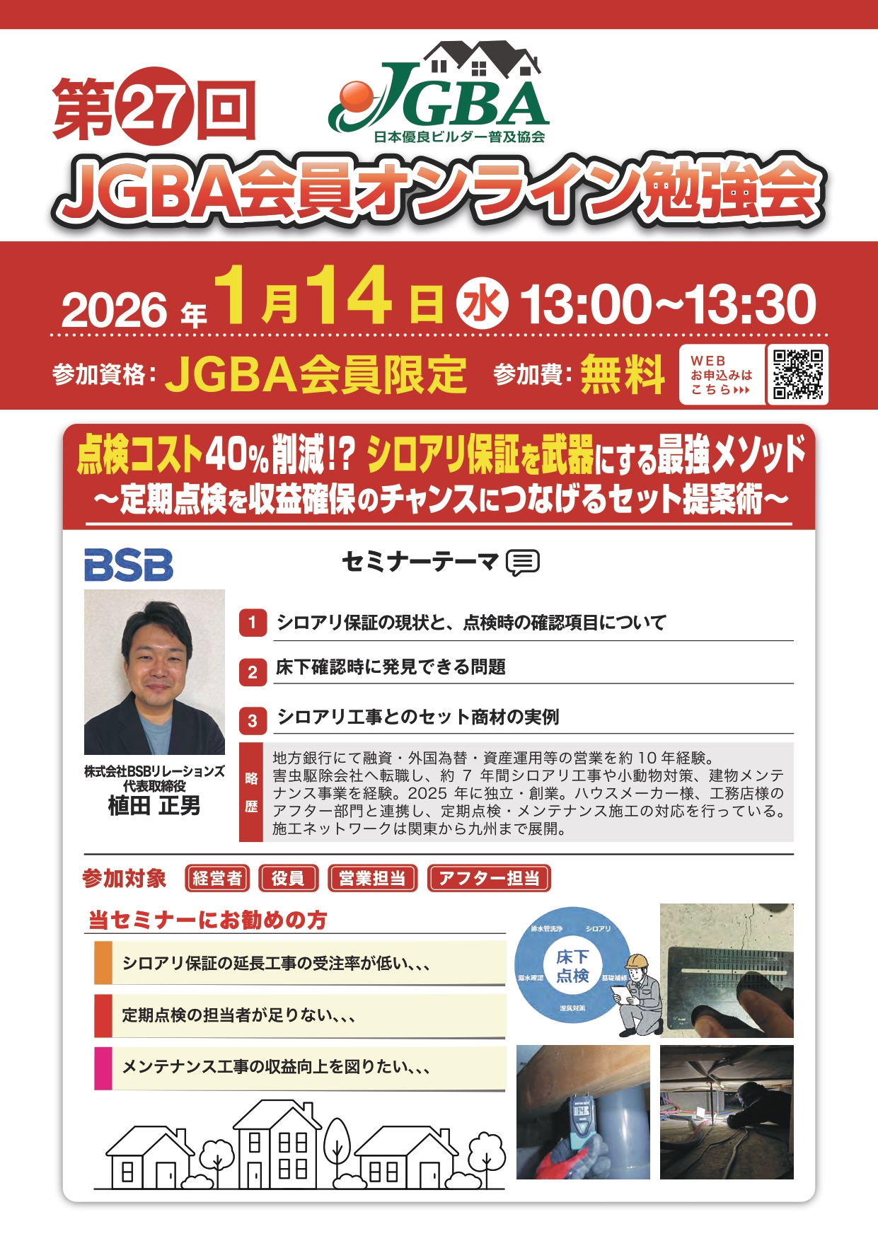 【点検コスト40%削減!? シロアリ保証を武器にする最強メソッド ~定期点検を収益確保のチャンスにつなげるセット提案術~】