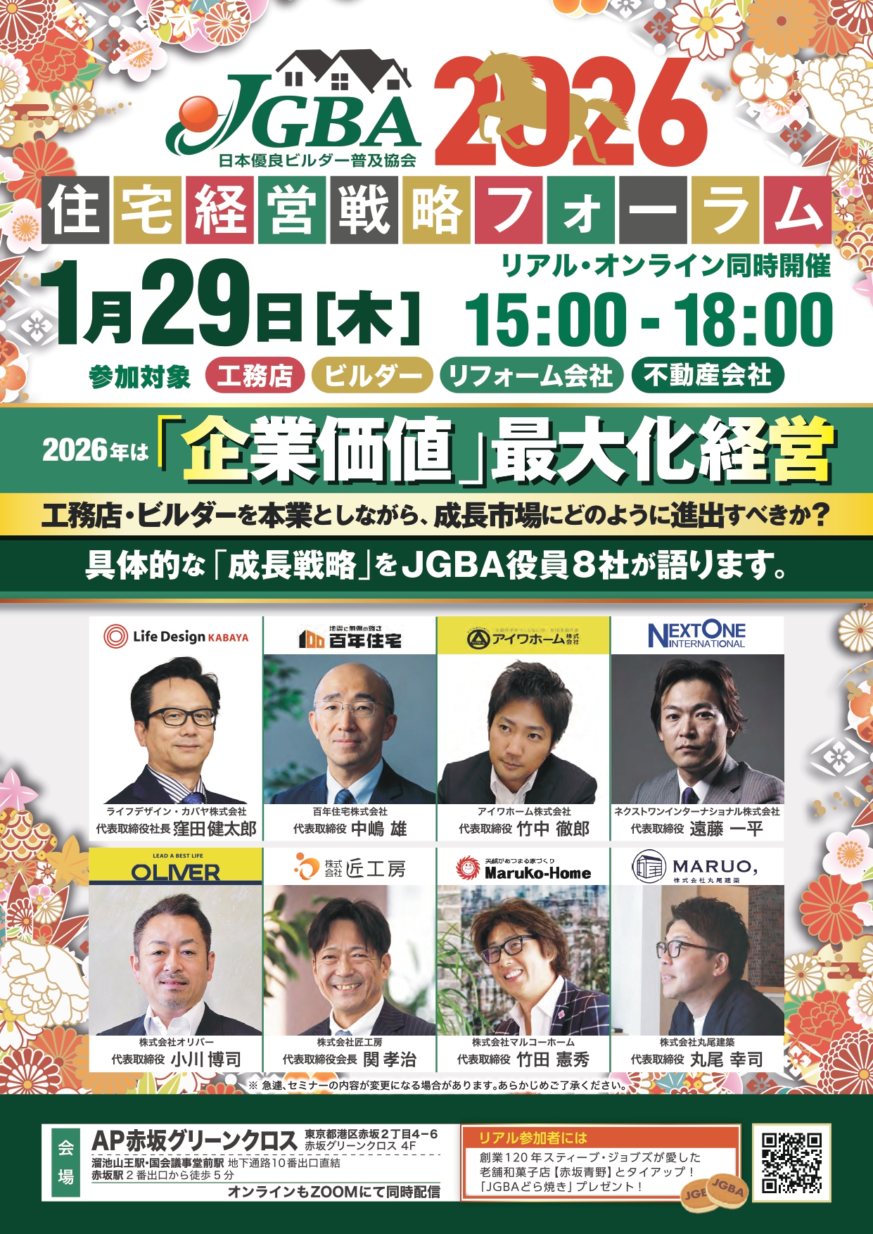 テーマは『2026年は「企業価値」最大化経営 ~工務店・ビルダーを本業としながら、成長市場にどのように進出すべきか?~』です。