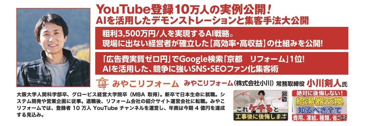 ・「広告費実質ゼロ円」でGoogle検索「京都 リフォーム」1位!AIを活用した、競争に強いSNS・SEOファン化集客術