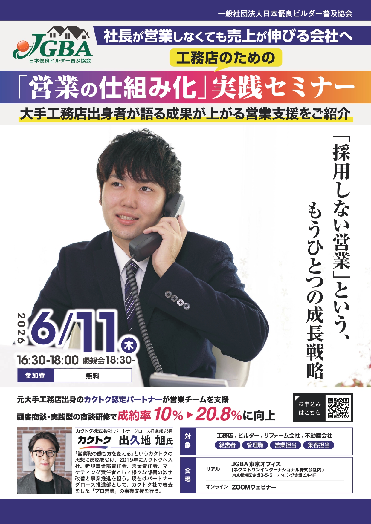 2026年6月11日(木)『社長が営業しなくても売上が伸びる会社へ 工務店のための「営業の仕組み化」実践セミナー』