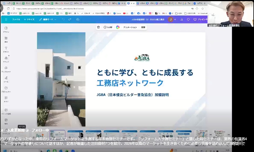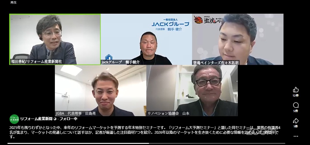 2025年12月4日(木)「2026年リフォーム大予測セミナー」にJGBA田島代表理事が登壇しました。