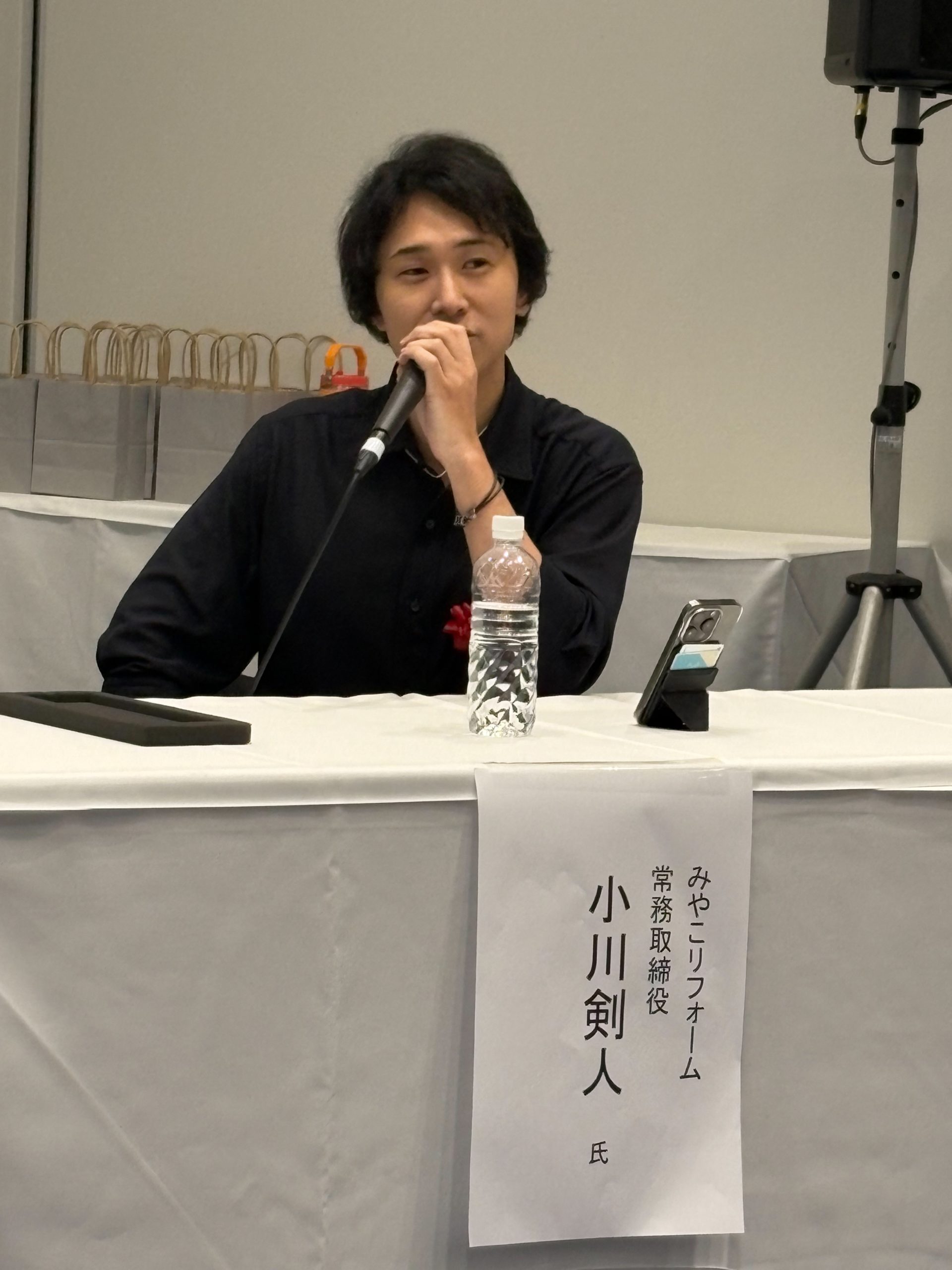 リフォーム産業新聞社に確認したところ、セミナー参加人数は立ち見の人含め155名の方だったそうです。これは、「リフォーム産業フェア」公式セミナー全体で第2位の参加者数とのことです(ちなみに1位は主催のリフォーム産業新聞社福田氏と新建新聞社三浦氏のトークセッションなので外部のセミナーでは実質1位!)。