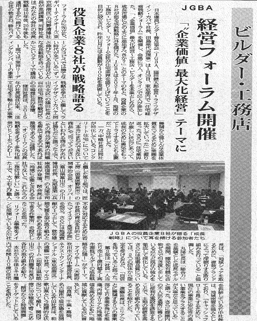 住宅産業新聞(2026年2月10日号)にJGBA「住宅経営戦略フォーラム」開催の記事を掲載いただきました!