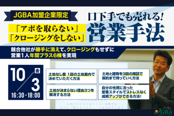 2025年10月3日(金)『口下手でも売れる!「アポを取らない」「クロージングをしない」営業手法~競合他社が勝手に消えて、クロージングもせずに営業1人年間プラス6棟を実現~』